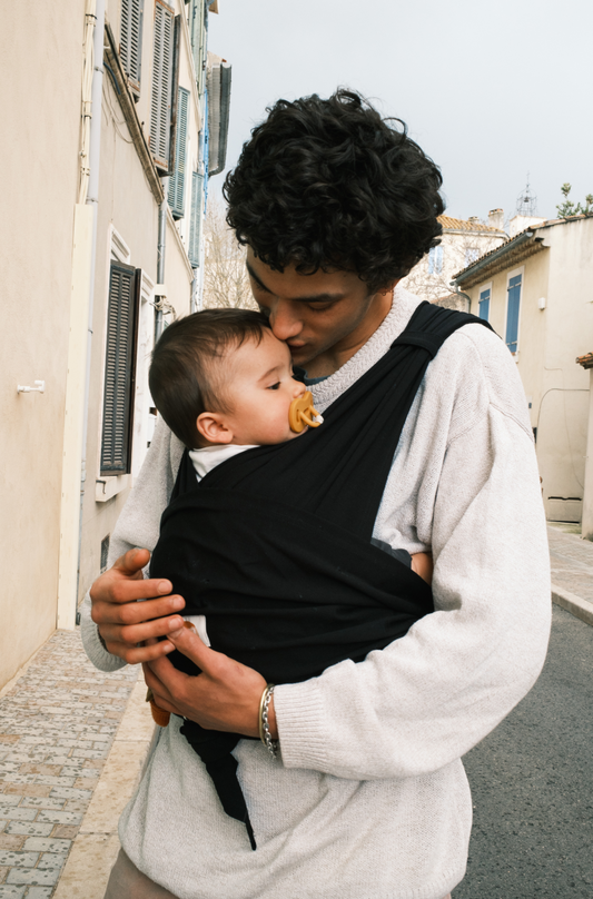 Le portage devient facile avec notre porte bébé Nomad à enfiler comme un t-shirt !